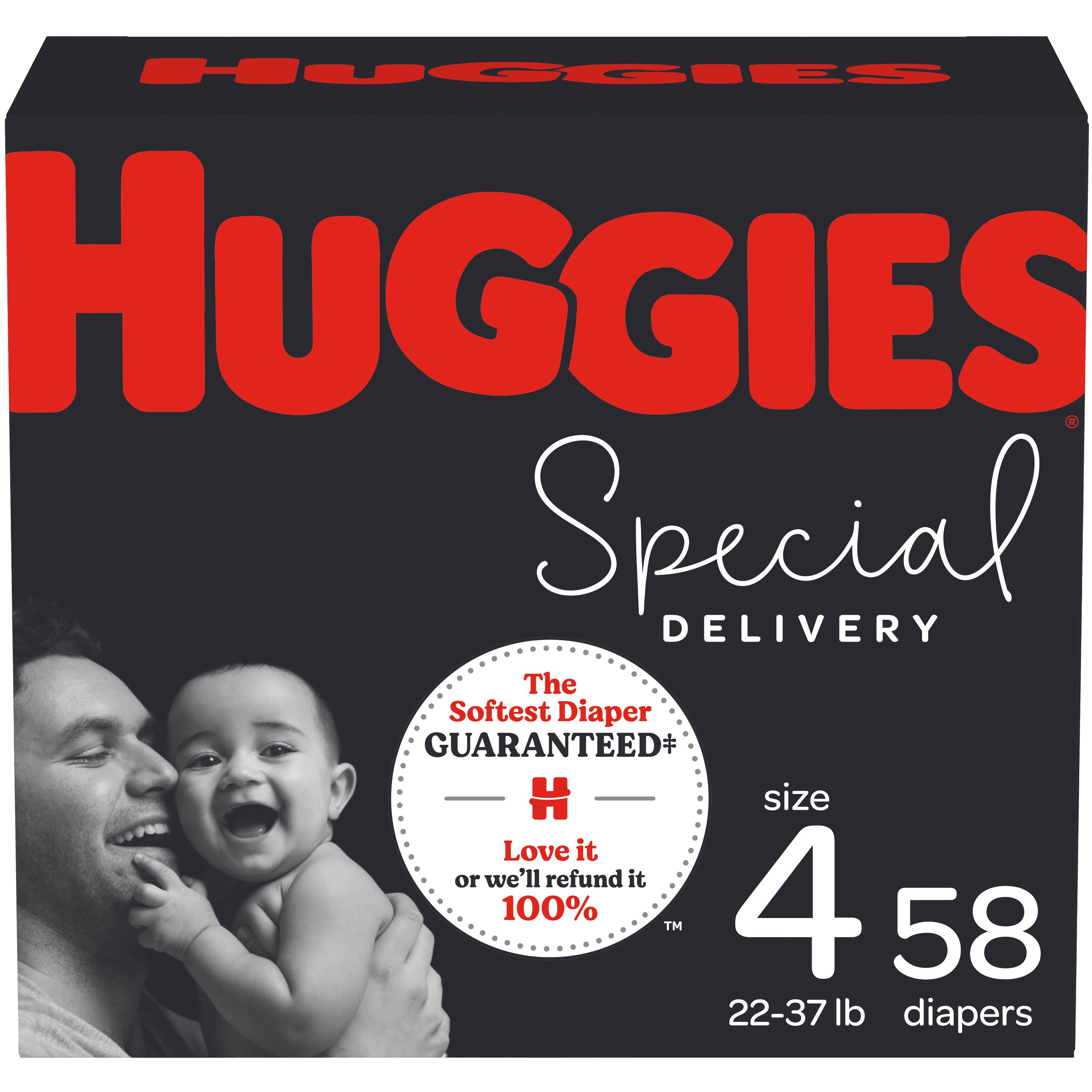 Huggies Special Delivery Size 4 Diapers fit babies 22-37 lb. Safe for sensitive skin with no harsh ingredients Special Delivery unscented baby wipes are clinically proven hypoallergenic dermatologically tested pH-balanced to help maintain healthy skin. Add an address to see options.